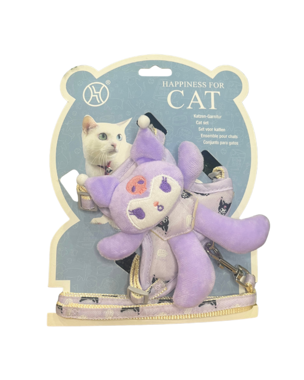 Prepara a tu gato para ser la sensación en cada salida con este set de arnés y correa que combina seguridad y el más puro estilo Kawaii (tierno/lindo). Este adorable diseño en color lila/morado vibrante, con su peluche de personaje, convertirá cada paseo en un momento de diversión.