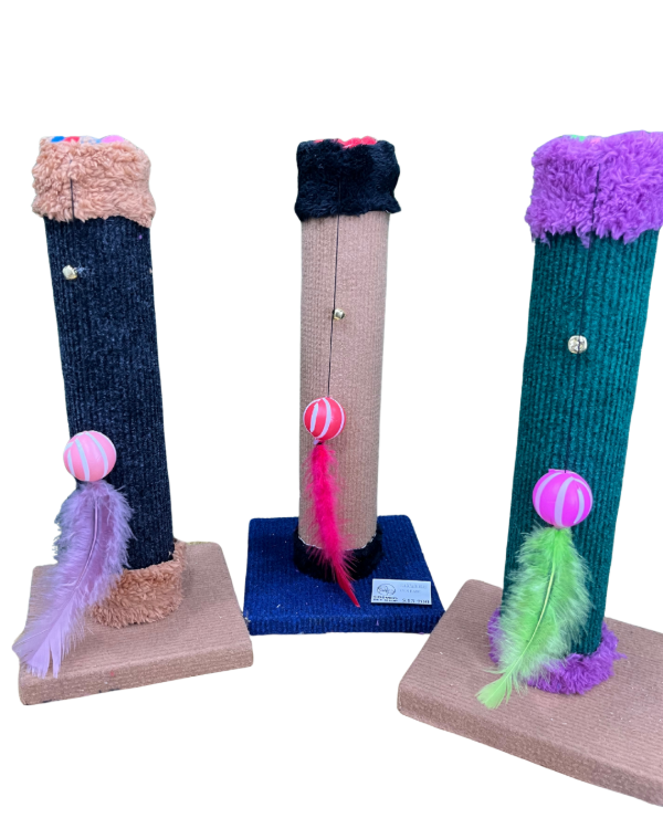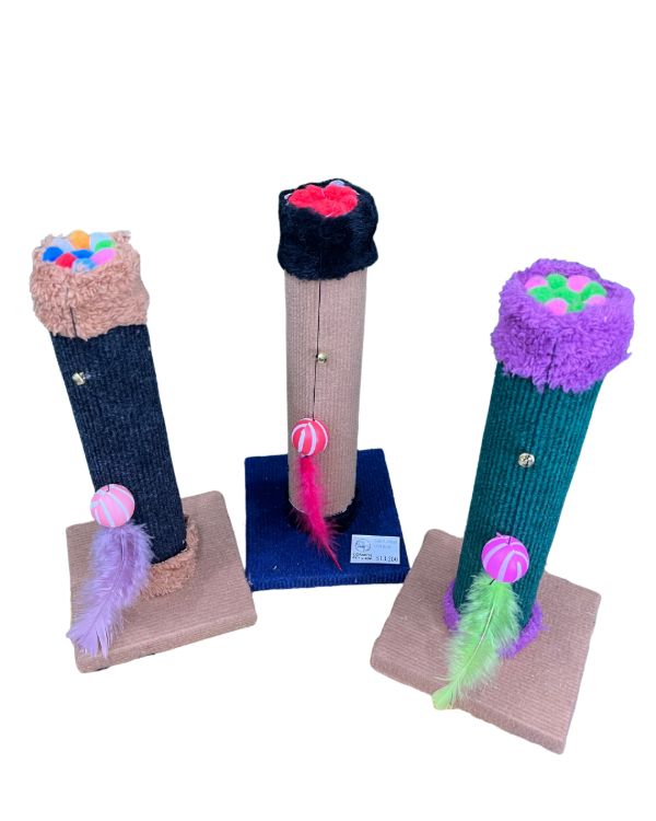 Estos rascadores verticales son el accesorio perfecto para estimular los instintos de tu gato, ofreciendo un lugar donde afilar sus uñas, jugar y liberar energía. Su diseño compacto y colorido se integra fácilmente a cualquier espacio.