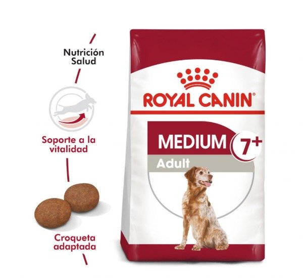 ROYAL CANIN MEDIUM ADULTO 7+ MATURE (3 KG) es un alimento seco Super Premium formulado para perros maduros de talla mediana (cuyo peso adulto oscila entre 11 y 25 kg), a partir de los 7 años de edad. Su composición está diseñada para ayudar a mantener la vitalidad y combatir los primeros signos de envejecimiento mediante un exclusivo complejo de antioxidantes. Además, promueve la salud digestiva con proteínas L.I.P. y fibras balanceadas, y está enriquecido con EPA-DHA para el mantenimiento de una piel y un pelaje saludables, incluyendo agentes quelantes de calcio para la salud dental (reducción de sarro).