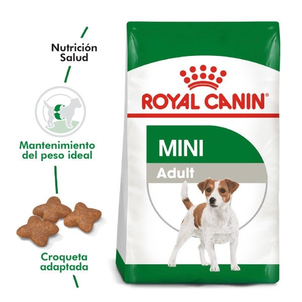 ROYAL CANIN MINI ADULTO (3 KG) es un alimento seco Super Premium diseñado específicamente para perros adultos de talla pequeña (cuyo peso adulto es de 1 a 10 kg), de 10 meses a 8 años de edad. Su fórmula está adaptada a las altas necesidades energéticas de las razas pequeñas, ayudando a mantener el peso ideal gracias a un contenido adaptado de calorías y la adición de L-carnitina. Ofrece una palatabilidad reforzada para satisfacer a los perros más selectivos, contribuye a la salud del pelaje con EPA y DHA, y ayuda a reducir la formación de sarro gracias a los agentes quelantes de calcio.