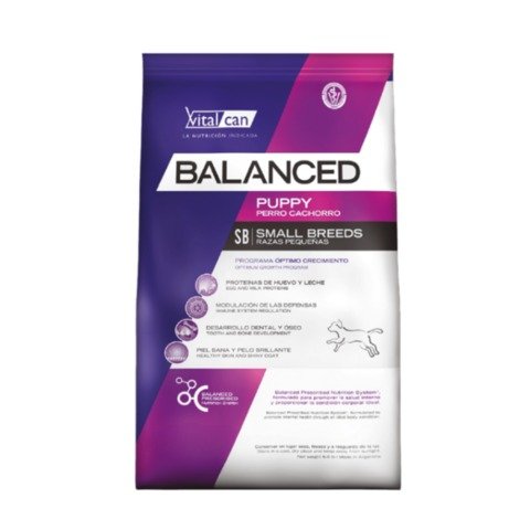 VITAL CAN BALANCED CACHORRO RAZA PEQUEÑA (3 KG) es un alimento seco Super Premium diseñado para el Programa Óptimo Crecimiento de cachorros de razas pequeñas (hasta 12 meses de edad). Su fórmula de alta densidad energética y palatabilidad es ideal para las mandíbulas pequeñas, y aporta proteínas de alto valor biológico de leche y huevo para un desarrollo muscular sano. Está fortificado con calcio y fósforo en proporciones equilibradas para un desarrollo dental y óseo fuertes, además de Vitamina C y nucleótidos de levadura para modular las defensas y promover una óptima respuesta inmunológica.