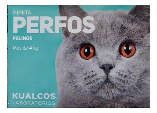 El producto PERFOS FELINOS MAS DE 4KG se refiere a una pipeta antiparasitaria externa (spot-on), generalmente de la línea Perfos Max del Laboratorio Kualcos, diseñada específicamente para gatos que pesan más de 4 kg (el rango suele ser de 4 a 8 kg o 4 a 10 kg).